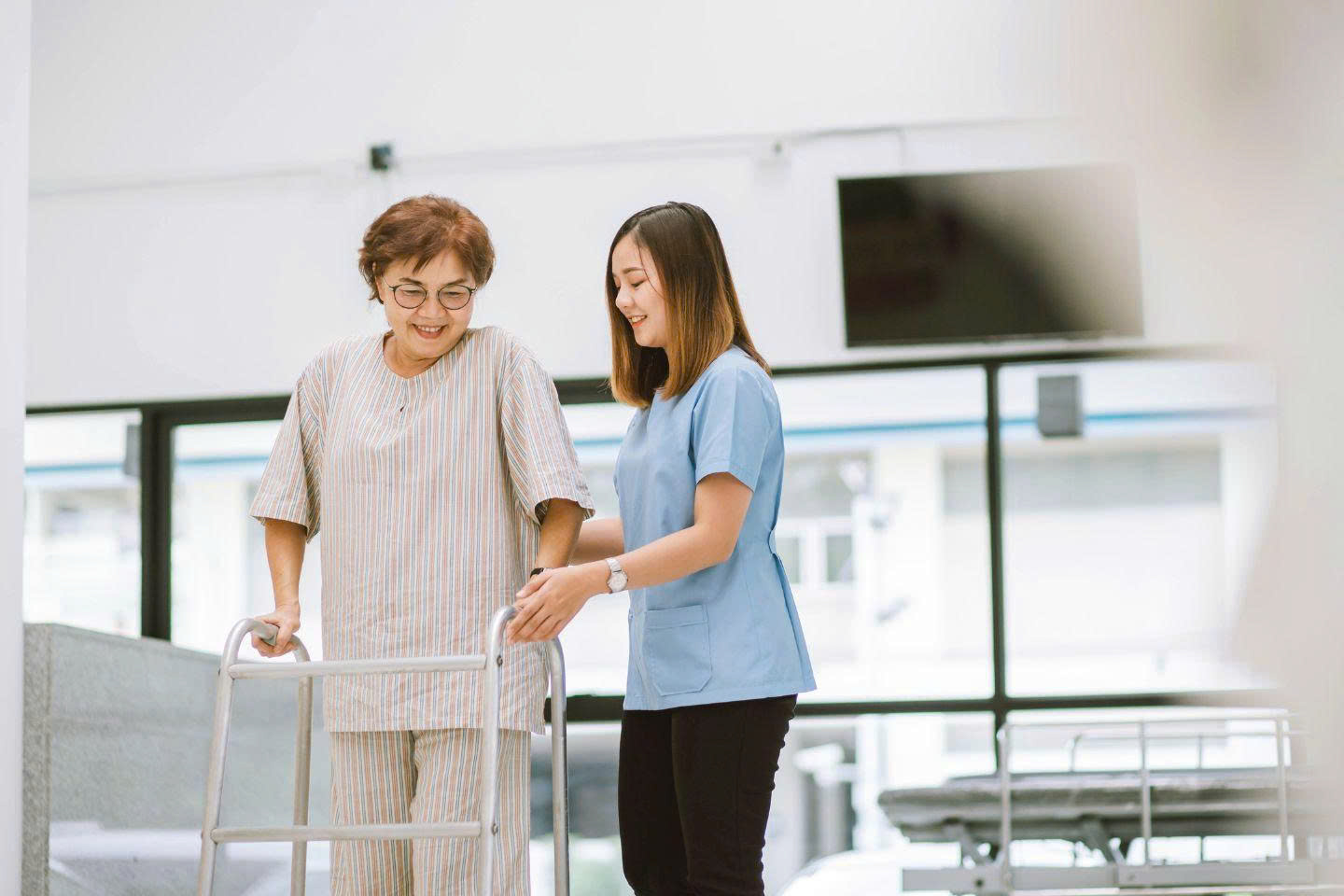 Chăm sóc người lớn tuổi đang yếu, cần hỗ trợ đi lại, ăn uống.