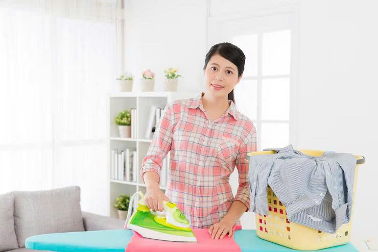 nhân viên giúp việc Tân Bình đang ủi đồ tại nhà khách hàng