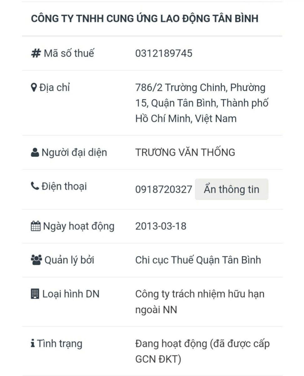 CÔNG TY TNHH CUNG ỨNG LAO ĐỘNG TÂN BÌNH