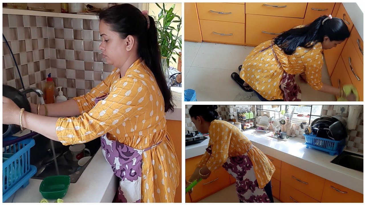 Người giúp việc tận tâm với công việc dọn dẹp khu vực bếp núc